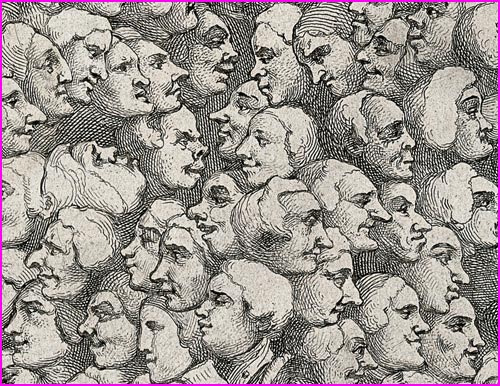 Detail from Characters and Caricaturas (1743) by William Hogarth (1697-1764), a Londoner who painted these contemporaries from life, in England’s fast-expanding metropolitan region which by 1800 had become one of the largest cities in world. © https://publicdomainreview.org/